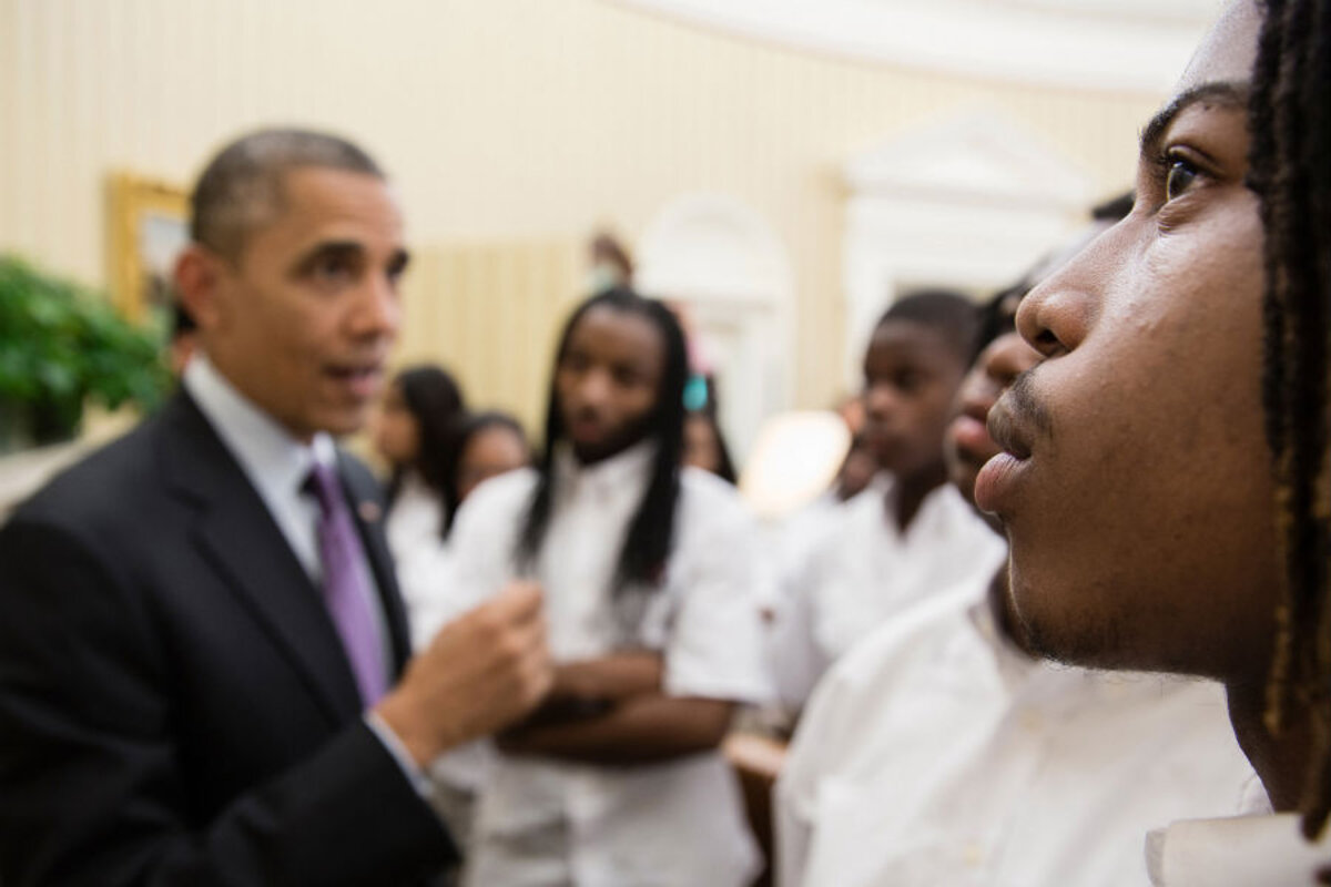 Pictures of Obama interacting with young black men and boys will be one of the enduring images of his presidency 鈥 snapshots that capture the aspiration of many, including Jarrett, who hopes that 鈥渓ittle black boys grow up saying, 鈥業 want to be like him.鈥 鈥 A photo of Obama stooping in the Oval Office to allow a black boy to touch his hair has hung in the White House for years, as other photos have come and gone.