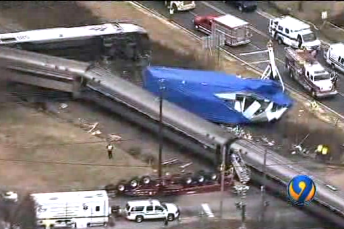 "Oh my God, I mean the 18-wheeler is completely turned over," she said. "The Amtrak is derailed. It's still upright."