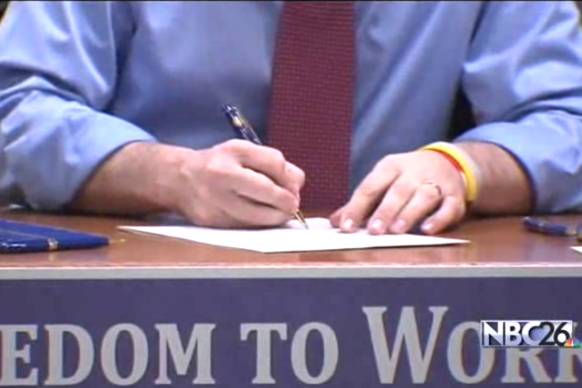 Wisconsin Governor Walker signs bill that incenses organized labor