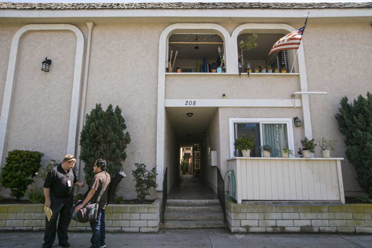 Reina Yorba, 12, said she and her mother, Anissa, heard the woman pounding loudly on her father's door in their apartment complex. Then they saw her borrow a cellphone from a neighbor.