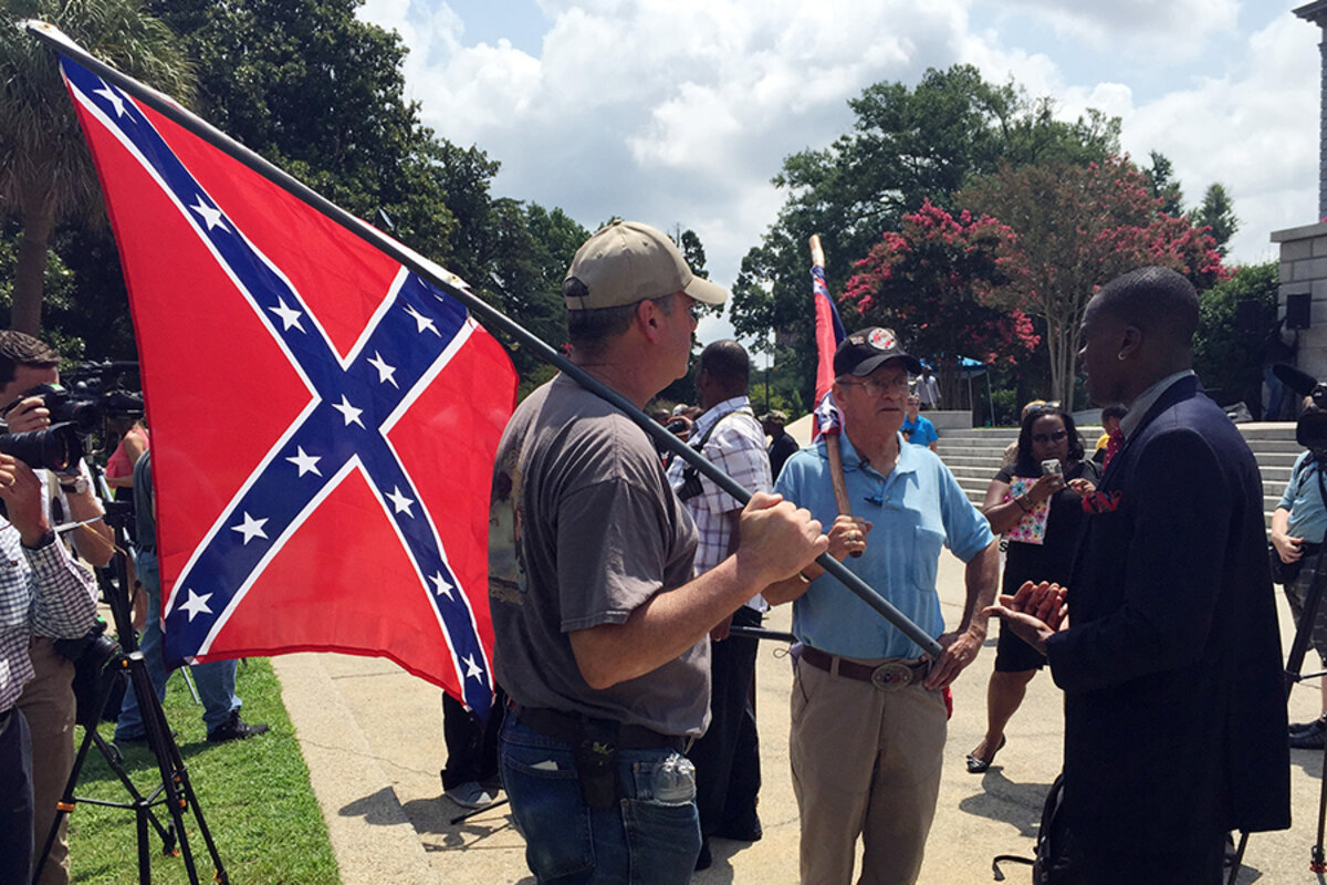 Outside the Statehouse, dozens of protesters began to arrive, all watched by even more officers inside and outside the capitol. Some called for the flag to come down. Others, such as Nelson Waller in his rebel flag tie, said the state was giving in to Northern liberals and civil rights activists.