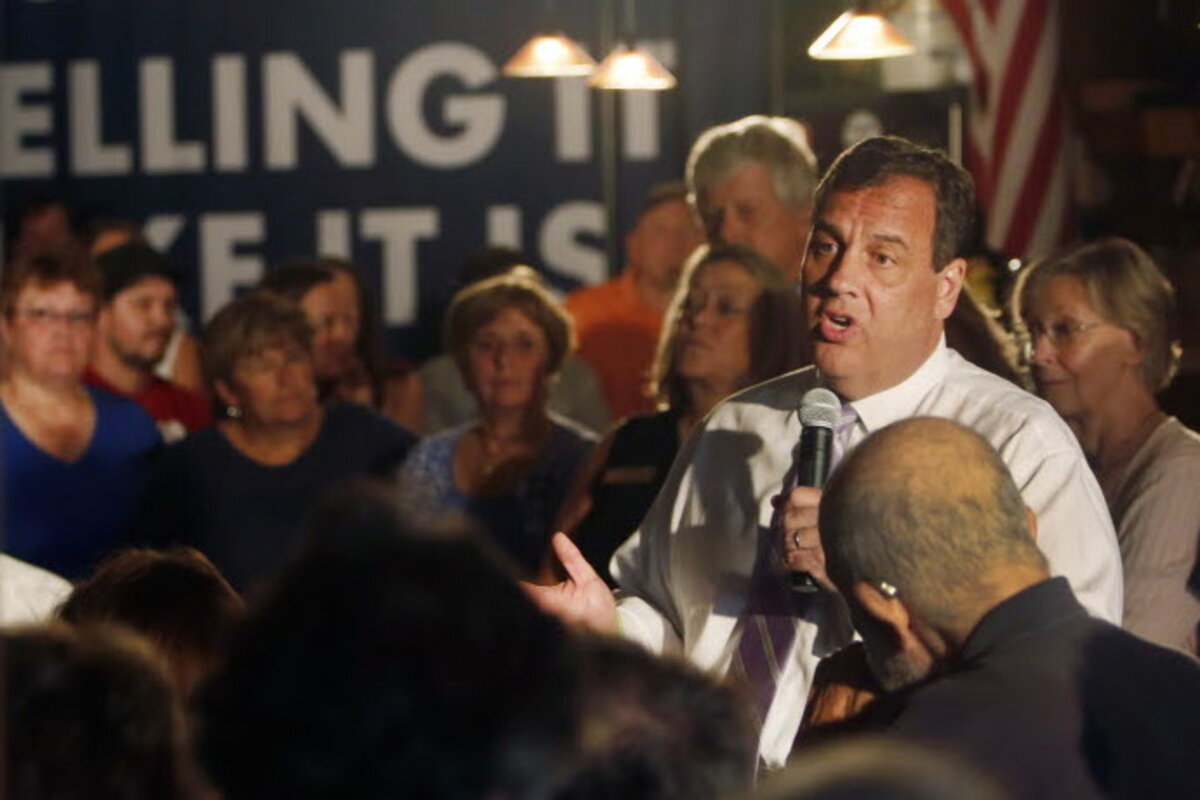 "All things being equal, if the primary was tomorrow I'd really have to lean toward him," said Jim Skinner after seeing Christie at a recent event. "But I haven't seen all the candidates yet." His friend Alan Lane offered a similar non-commitment: "This has just begun, but he's up there."