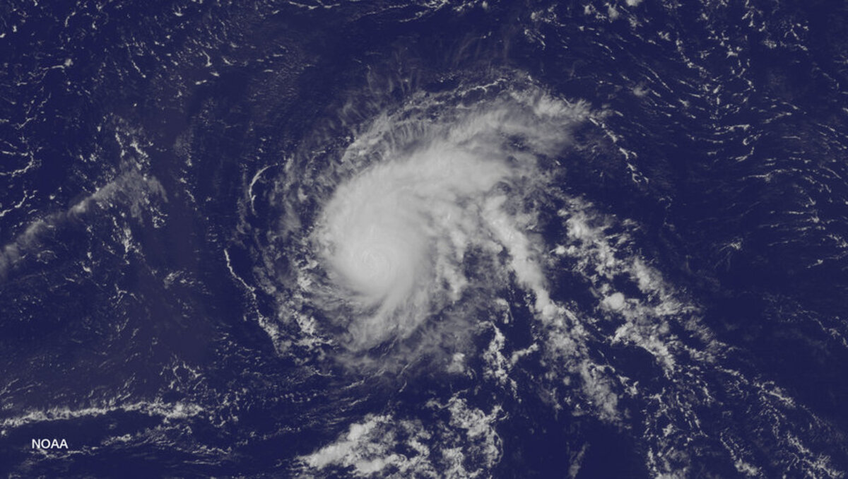 The hurricane is centered about 440 miles (705 kilometers) south-southwest of the southern tip of Mexico's Baja California peninsula and is moving northwest near 14 mph (22 kph).