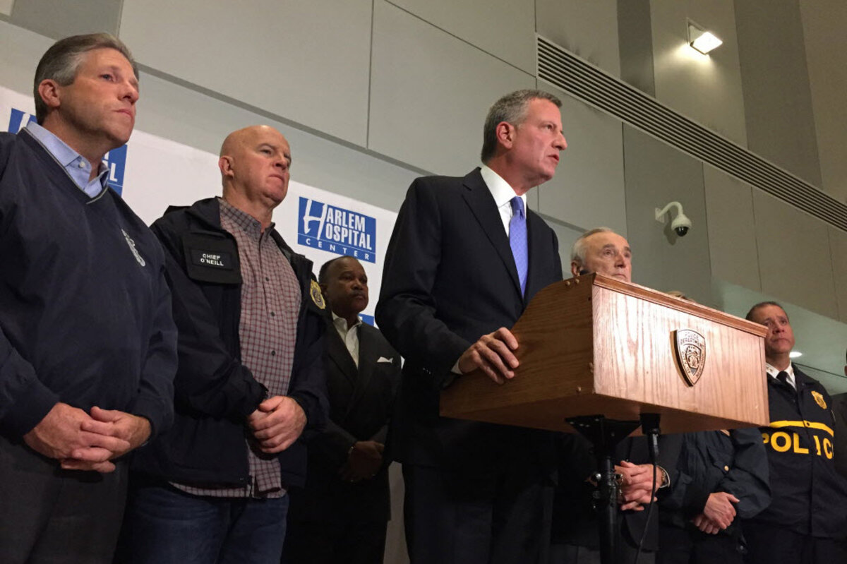 "We are humbled by Officer Randolph Holder's example, an example of service and courage and sacrifice," Mayor Bill de Blasio said at the press conference. "Our hearts are heavy. We offer our thoughts and our prayers to his family."