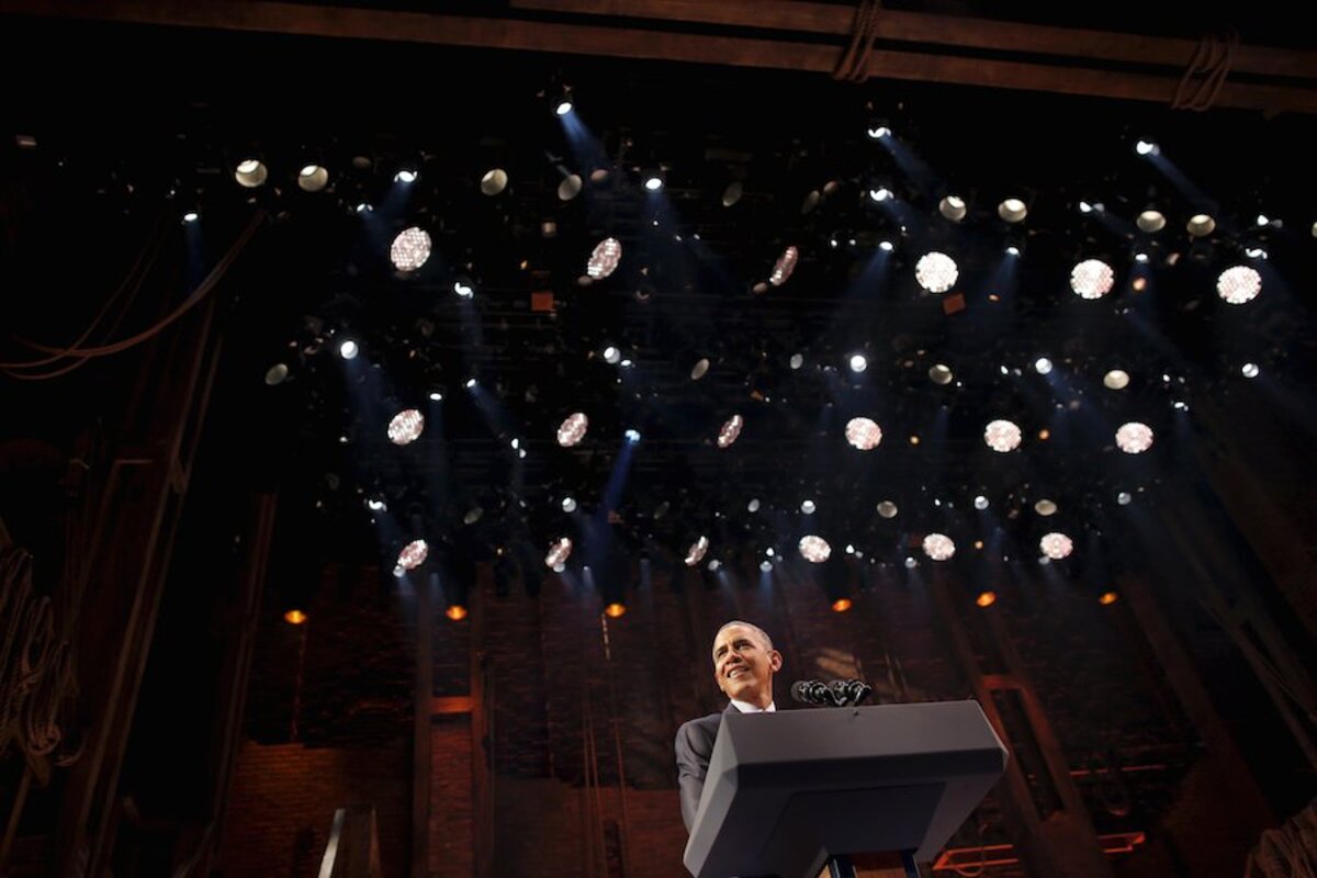 The president left a crowd of more than 1,300 in stiches on Monday night at the Richard Rodgers Theatre, home to the hit musical "Hamilton" about Founding Father Alexander Hamilton. The cast staged a special performance for a Democratic National Committee fundraiser, with Obama as the encore.