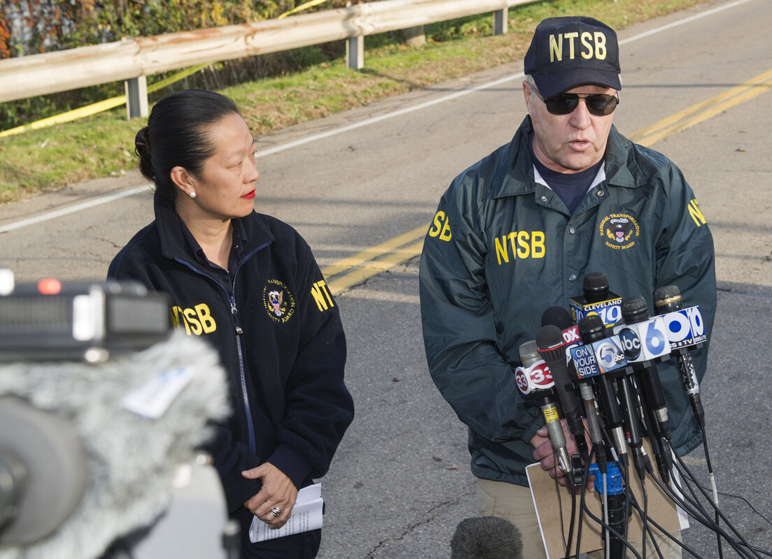 Investigators also reviewed surveillance video from a construction company that showed the plane coming in along the tops of trees and banking to the left before it crashed and exploded into flames and a cloud of black smoke, said Bella Dinh-Zarr, vice chairman of the NTSB.