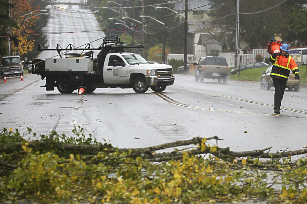 In Snohomish County, about 150,000 customers were left without power after a "huge windblast," Puget Sound Utility said.