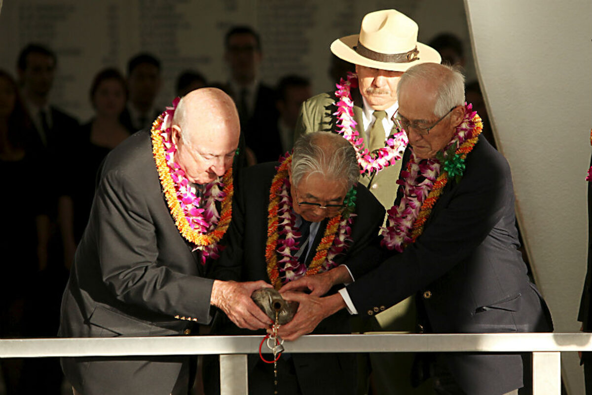 In the 1980s, Japanese residents brought the flask to Pearl Harbor in what would become an annual ceremony celebrating peace and the friendship between the nations 鈥 once combatants, now allies.