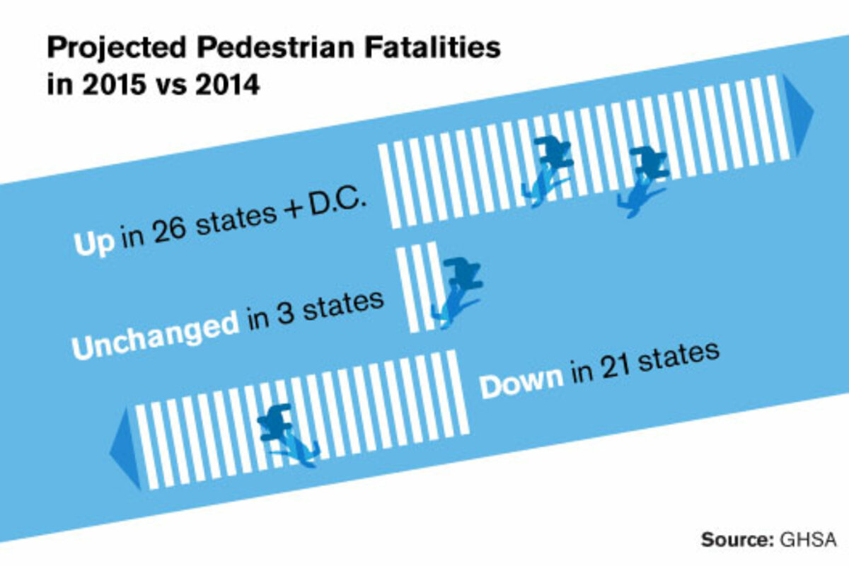 According to an annual report by the Governors Highway Safety Association (GHSA), 2015 saw a 10 percent increase in pedestrians killed in motor vehicle crashes compared to a four percent decline in overall traffic deaths during the same period. In the first six months of 2015, 2,368 pedestrians were killed by traffic crashes.聽