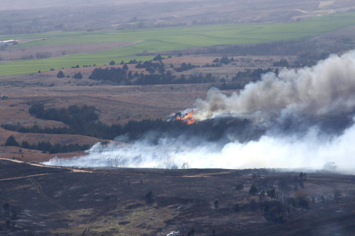 After starting in Oklahoma, the Anderson Creek Fire moved across the border to become the worst wildfire in Kansas history, scorching an estimated 574 square miles of rural lands between the two states. On March 28, the Kansas Forest Service reported that the fire was about 90 percent contained overall, thanks to collaborative efforts from the National Guard, fire departments from neighboring states, community college fire science students, and unexpected snowfall.聽