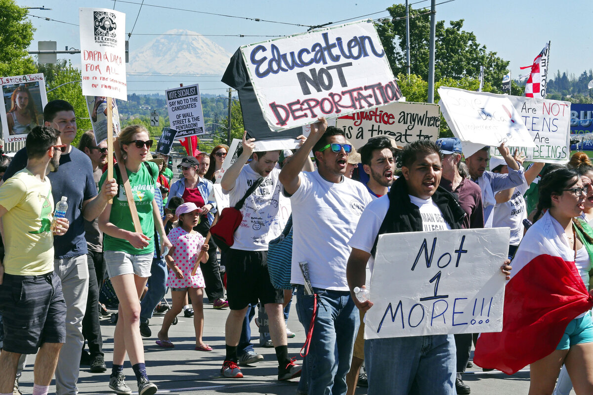 Sunday's protests in Seattle called for better wages, an end to deportations, and support for an Obama administration plan to give permits to undocumented workers whose children are American citizens.