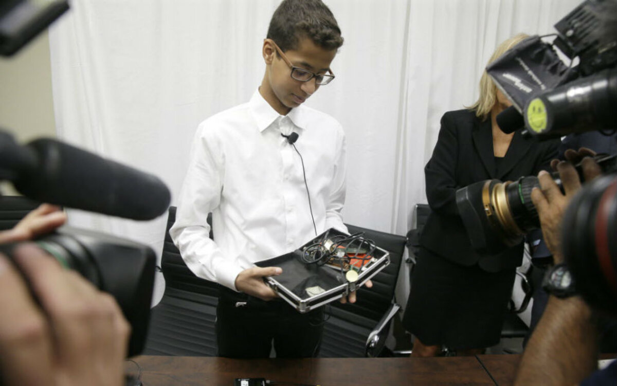 Ahmed was arrested in September, 2015, after bringing a clock he had built from a plastic pencil box, electrical wire, and hardware from his parents鈥 garage into school. School officials called police to the building, who searched Ahmed鈥檚 belongings and took him into custody. Ultimately, he did not face charges, but was suspended from school for three days.聽