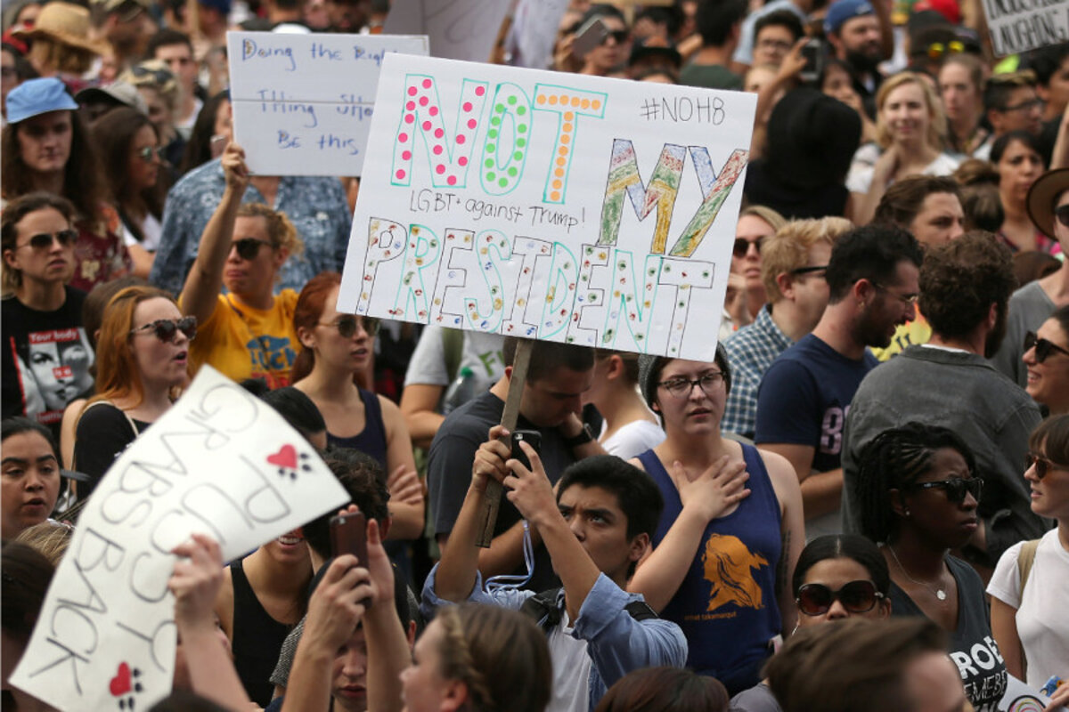 Demonstrations also took place internationally. About 300 people protested Trump's election as the next American president outside the US Embassy near the landmark Brandenburg Gate in Berlin.