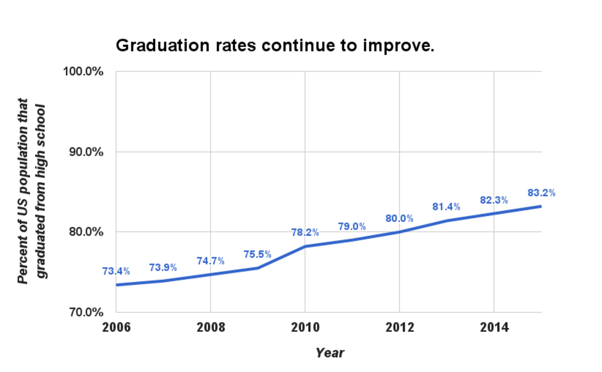 Between 2006 and 2015, the high school graduation rate increased by almost 10 percentage points, driven mainly by a spike from 2009-12. But even as the national rate of increase slowed, graduation rates for black and Hispanic students increased by respectively from 2011 to 2015 鈥 far above the average increase nationwide of 4.2 percentage points for the same period.