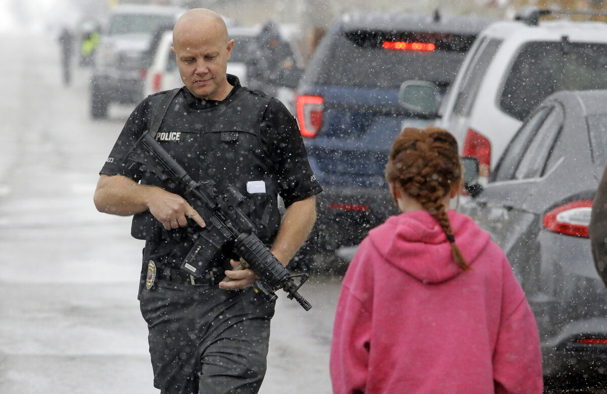 In a press conference in Bountiful, Utah, Police Chief Tom Ross described how a boy entered a classroom and discharged a shotgun round into the ceiling before pointing the weapon at himself. The parents, who were already inside the school, heard the shot. As a teacher and other students tried to talk the boy out of harming himself, his parents arrived and disarmed their son.