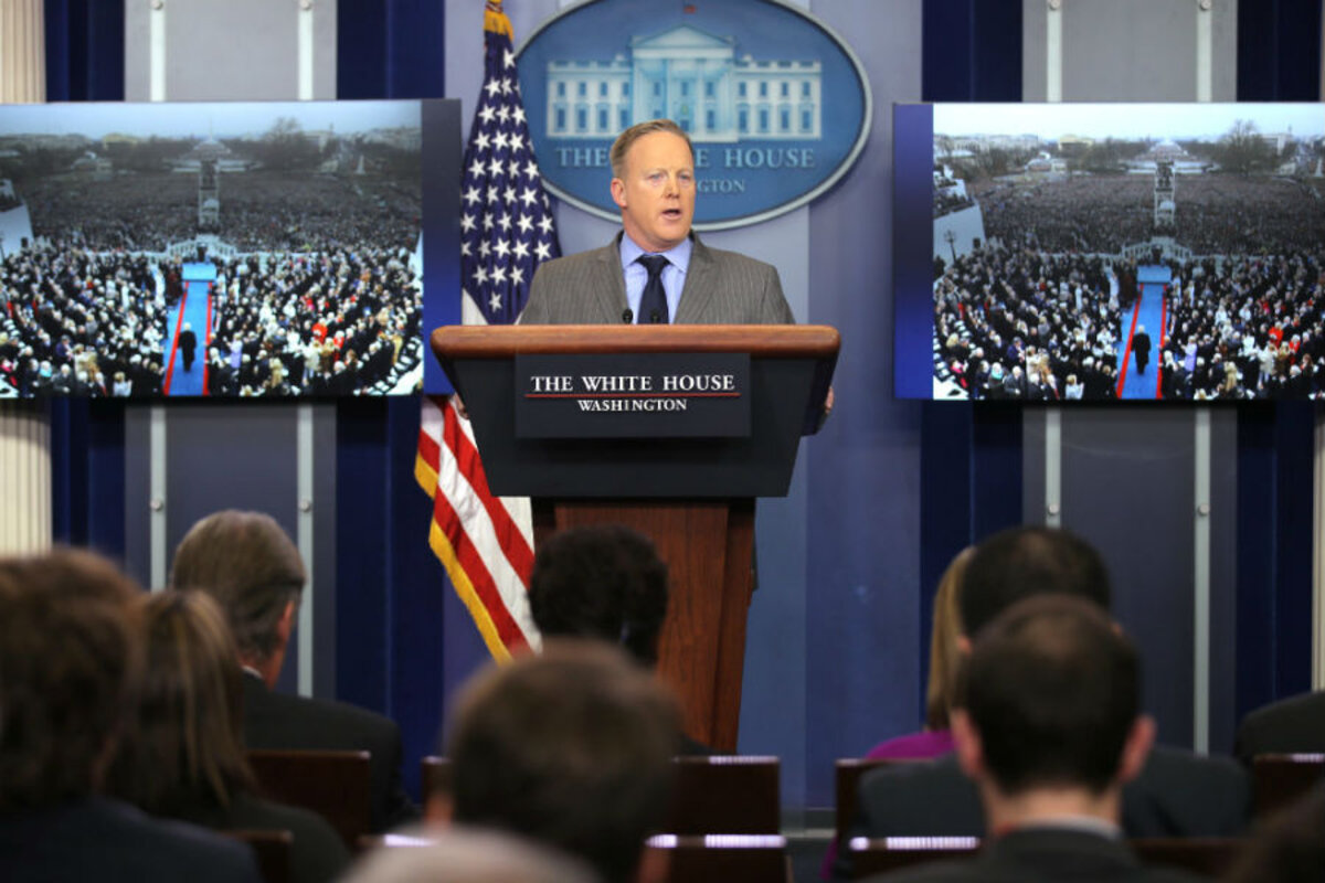 Press secretary Sean Spicer used his time with reporters on Saturday to criticize the media for allegedly underestimating the number of people who attended the president's inaugural ceremony the previous day, claiming that journalists had deliberately misstated the size of the crowd to He made an unverified claim that the global audience for Trump's inauguration was the largest ever, and falsely stated that more people used the D.C. metro system on Saturday than on the day of Barack Obama's.聽