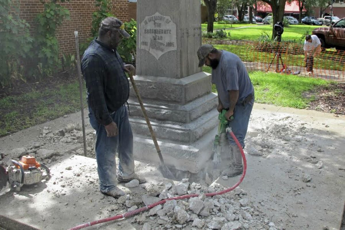 In Gainesville, Fla., workers hired by the Daughters of the Confederacy chipped away at a Confederate soldier's statue, loaded it quietly on a truck, and drove away with little fanfare.