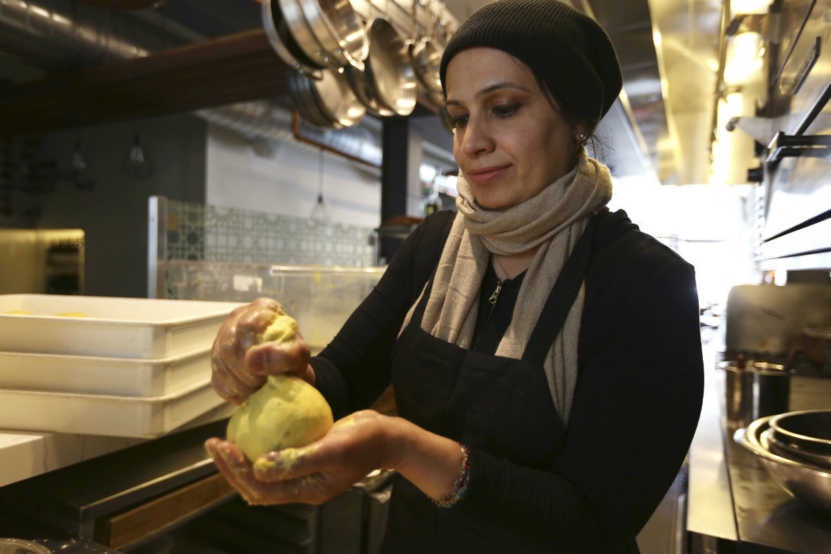 At San Francisco's Tawla restaurant, Muna Anaee powdered her hands with flour and gently broke off a piece of golden dough to prepare bread eaten in Iraq, the country she fled with her family.