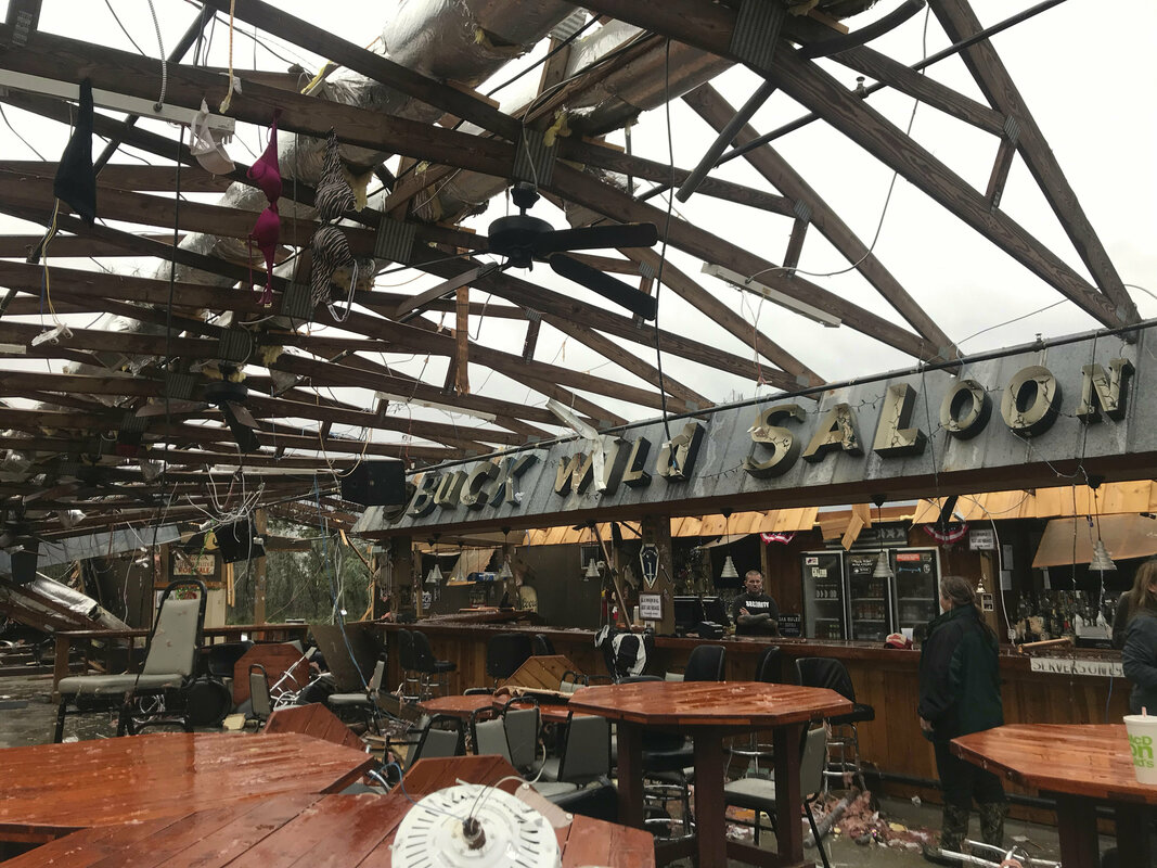 News footage showed smashed buildings with rooftops blown away, cars overturned, and debris everywhere. Trees all around had been snapped bare of branches.