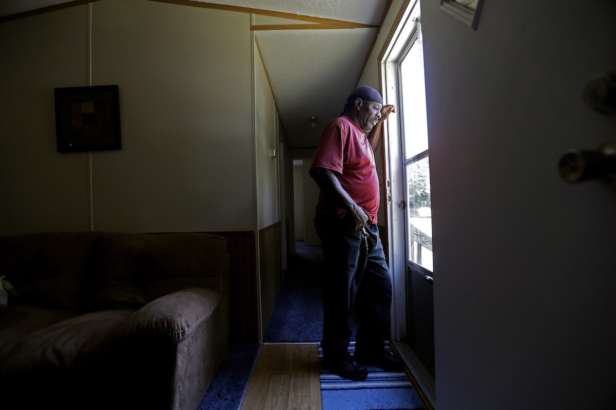 "If I had to pay $465 I couldn't even pay the lights in this place," he said, gesturing to the dim lighting inside his trailer, where trash bags covered windows to keep the trailer cool on a sweltering 100-degree day.