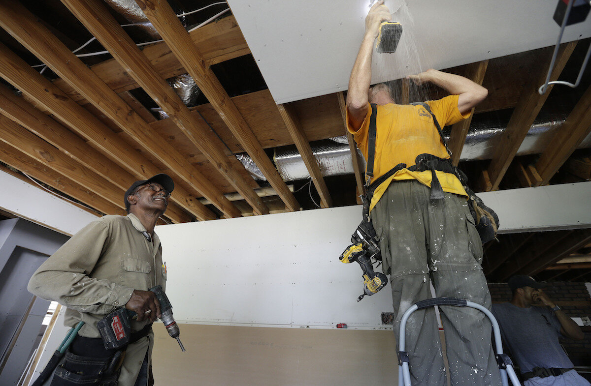 Now Ms. Rankins continues repair work on hers and neighbors' homes. On her street, three flooded homes qualified for STEP, but three didn't. Volunteer organizations decided to make all six homes more livable, going beyond STEP repairs. On a nearly 100-degree-day, Ms. Rankins crouched down to drill sheet rock for a neighbor who didn't qualify for STEP.