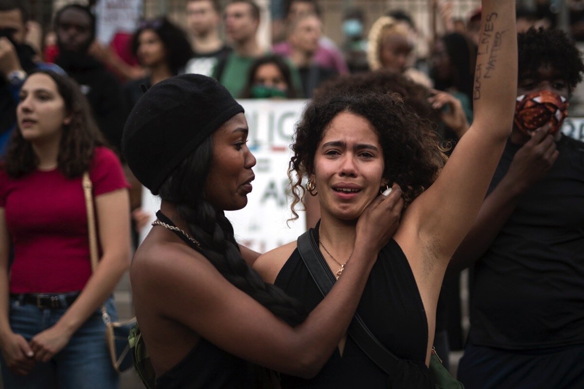 In Paris, hundreds of people gathered at the Place de la Concorde in defiance of a police ban on large protests. Members of the multiracial crowd chanted the name of Adama Traore, a black man whose death while in police custody a few years ago has been likened by critics of French police to Mr. Floyd鈥檚 death in Minnesota.