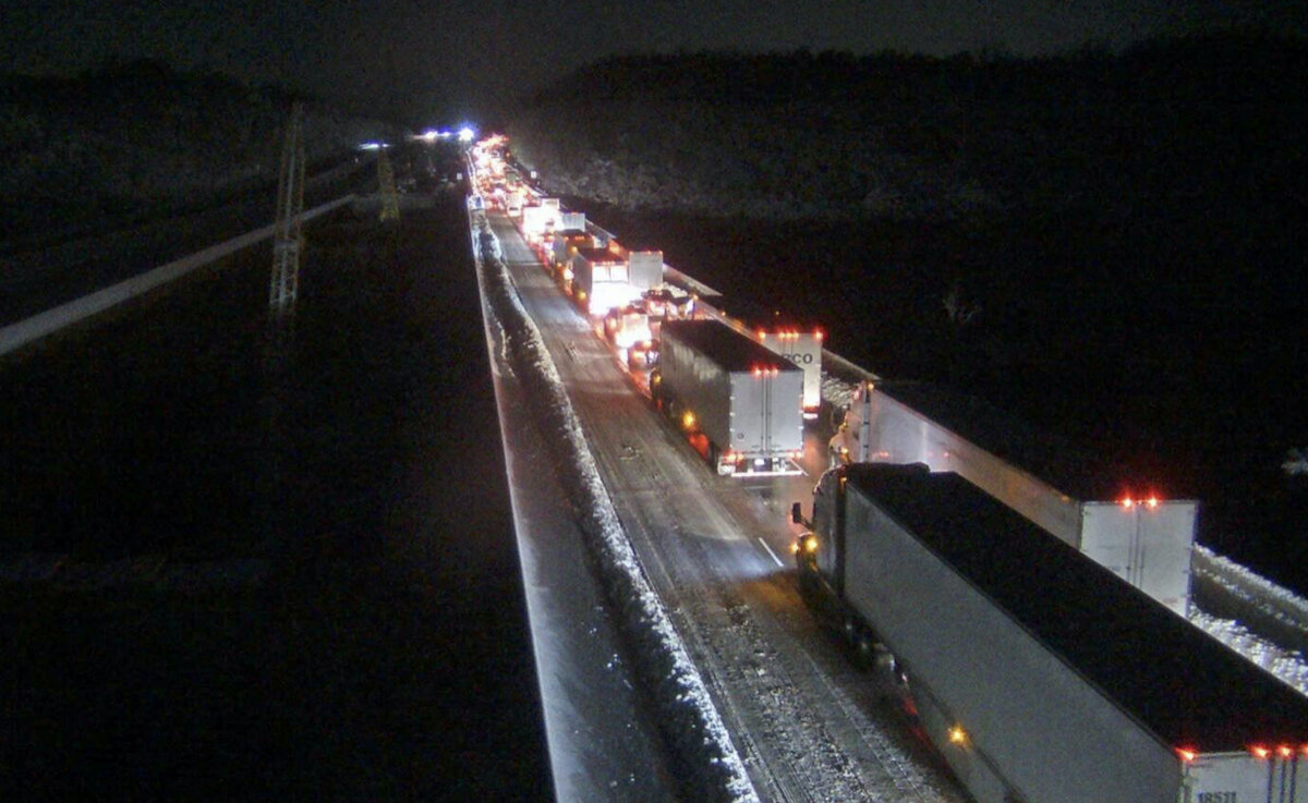 They mounted throughout the day as snow fell at a rate of up to 2 inches an hour, said Marcie Parker, a Virginia Department of Transportation engineer leading the effort to clear the interstate.