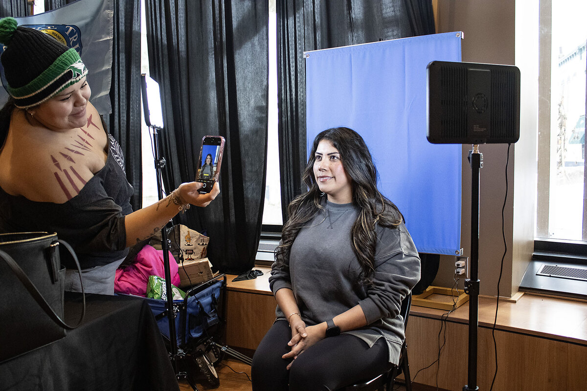 In Minneapolis last week, Cyrena Bugg sat for a photo in front of a blue screen. The image will appear on her ID from the Spirit Lake Tribe, which drove in from North Dakota to help members apply.