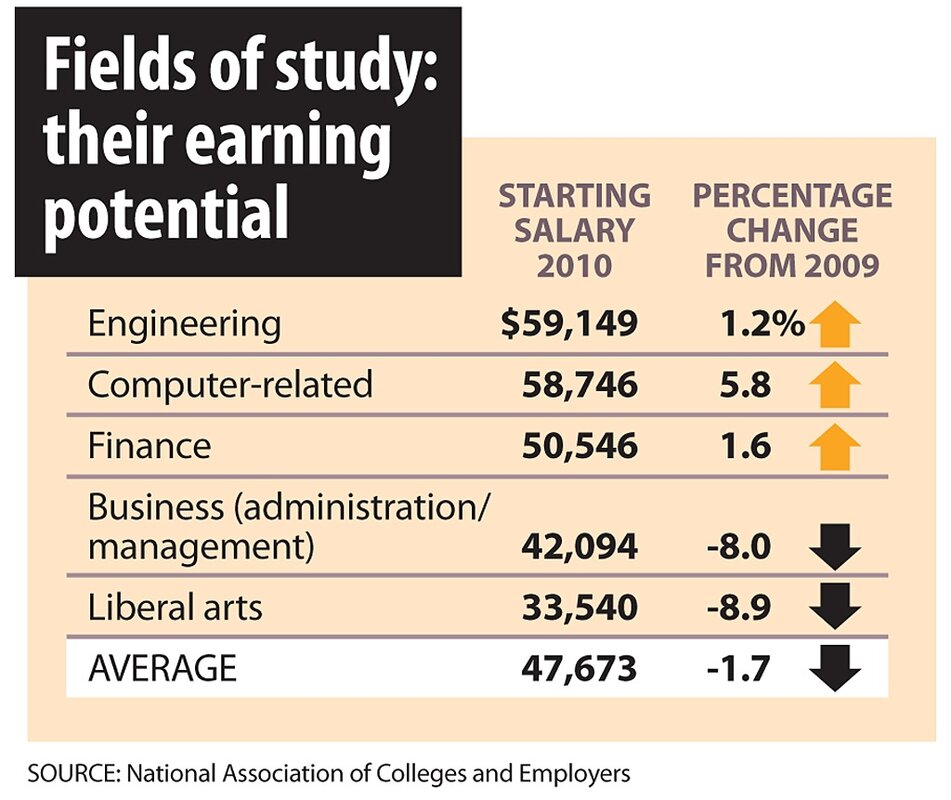 If you can crunch numbers, you鈥檙e probably in good shape: Opportunities for statistics majors are up 11 percent this year, according to CERI. Starting salaries for finance and accounting majors are up slightly, NACE reports. As in recent years, demand is strong for people with degrees in nursing and environmental science.