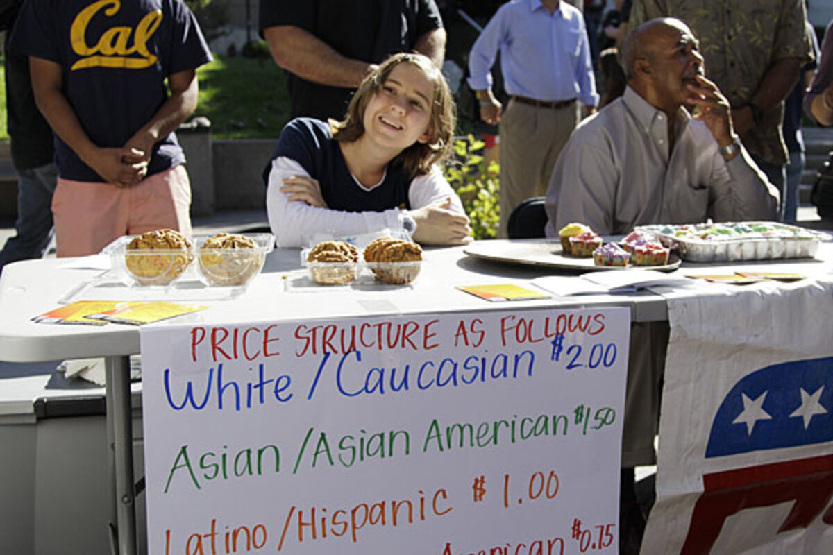 By the measure of media exposure, the Berkeley College Republicans' event was an unqualified success, making headlines across the country for the peculiar pricing system on its baked goods: $2 for whites, $1.50 for Asians, $1 for Latinos, and so on.