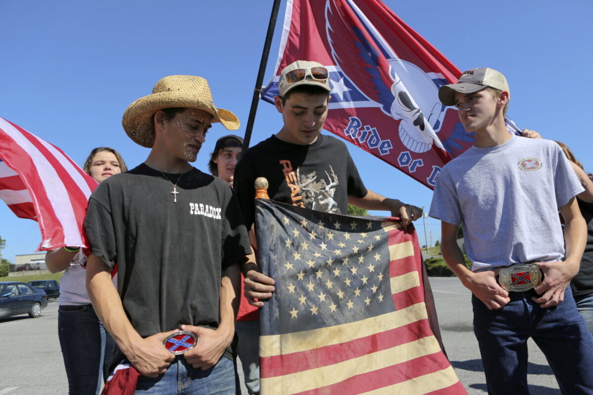 Banning Confederate flags from trucks in the school parking lot is in some ways the latest skirmish over how America thinks about the impact of symbols on race relations. A group of about 40 people, including 海角大神sburg High School students and their supporters, gathered near the school Friday to call on administrators to reverse their policy, the Associated Press reported. Some students said they鈥檒l continue to wear their rebel gear.