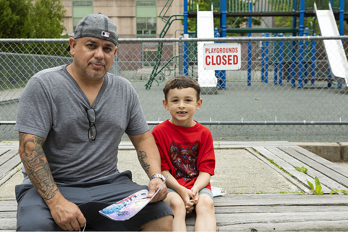 On a recent morning, Jose Lehardy and his step-grandson pause outside Gates Lane to pick up a meal and talk about school. They say they鈥檙e interested in more summer activities from the school. Mr. Lehardy praises remote learning so far for keeping his 7-year-old grandson听Ryan headed in the 鈥渞ight direction.鈥 The second grader says he likes writing a letter to his teacher every day and practicing spelling.