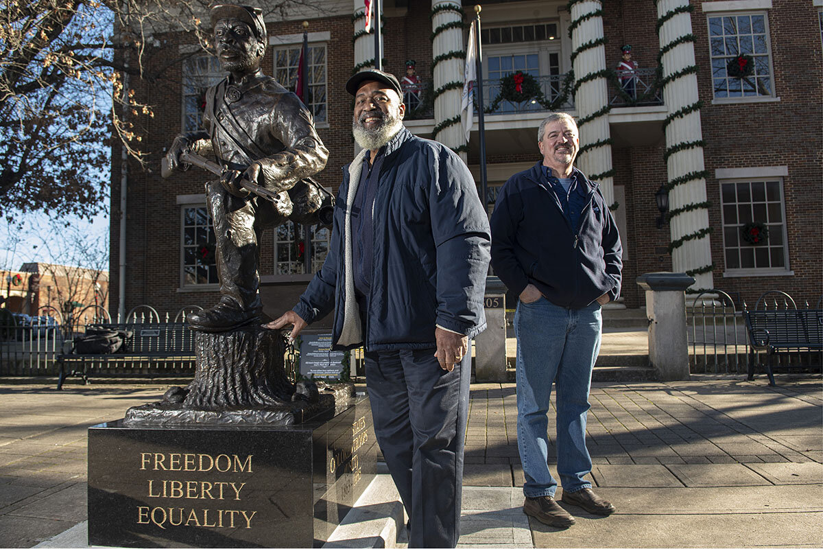 Race has become an increasingly discussed and debated topic here. At a roundabout in the center of Franklin, a 37-foot-high monument honoring Confederate soldiers has stood for more than 100 years. In October 2021, a statue of a U.S. Colored Troops soldier was added to the square across from the Confederate memorial. The new statue is part of a 鈥淔uller Story鈥 project started by local pastors and a historian in 2017 after the Unite the Right rally that drew hundreds of white nationalists and their supporters to Charlottesville, Virginia.聽