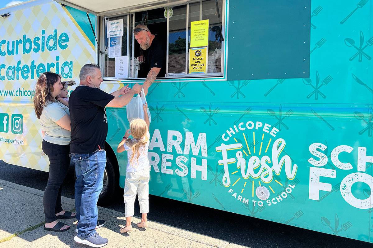That strategy works in Chicopee, a small city in central Massachusetts, where the local public school district offers at least two free meals daily to nearly 7,000 enrolled public school children. During the school year fresh items from local farms appear regularly on kids鈥 plates. This summer the 鈥淐urbside Cafeteria,鈥 a cheerfully painted aqua food truck, delivered meals at parks around town.听