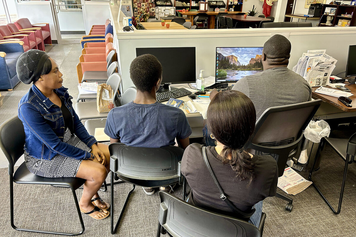 What they鈥檙e trying to defend is this: a group of Haitian immigrants huddled around a computer Tuesday afternoon. Their leader, a man who says he immigrated here three years ago and speaks English, was helping them apply for work authorization.