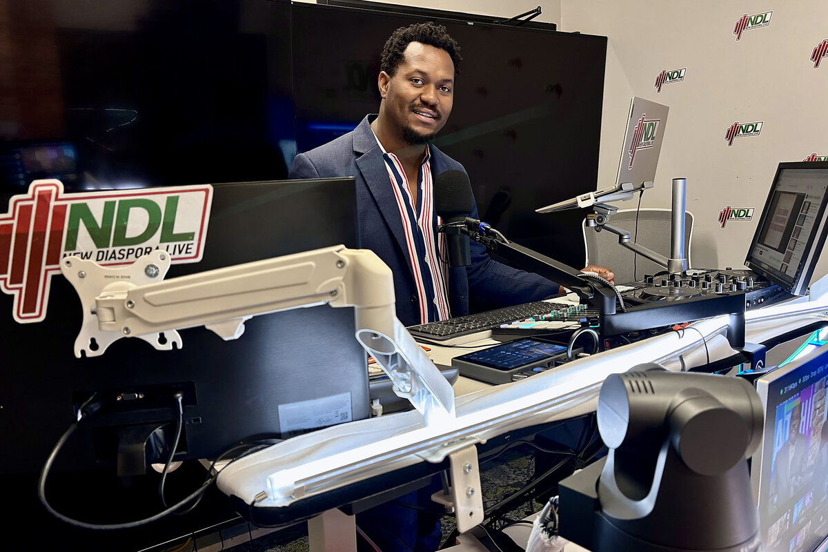 New Diaspora Live, billed as the Midwest鈥檚 most diverse studio, occupies a window-framed office inside a popular coworking space in Springfield. But on Tuesday morning, it might as well be located within Grand Central station. Visitors stream in and out of the radio station run by Haitian residents. Others congregate just outside it.