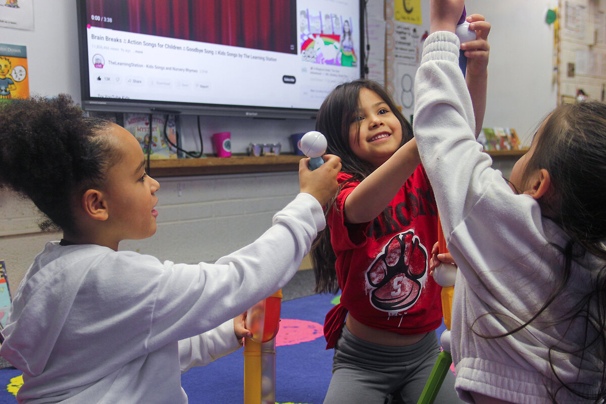 On a recent winter morning inside Ms. Anderson鈥檚 classroom, five children sat cozily on a carpet as Ms. Anderson reviewed the 鈥渂ig鈥 vocabulary words they had recently learned. The class was missing several students because of a snowstorm the day before, but Ms. Anderson forged ahead, supported by two other teachers.