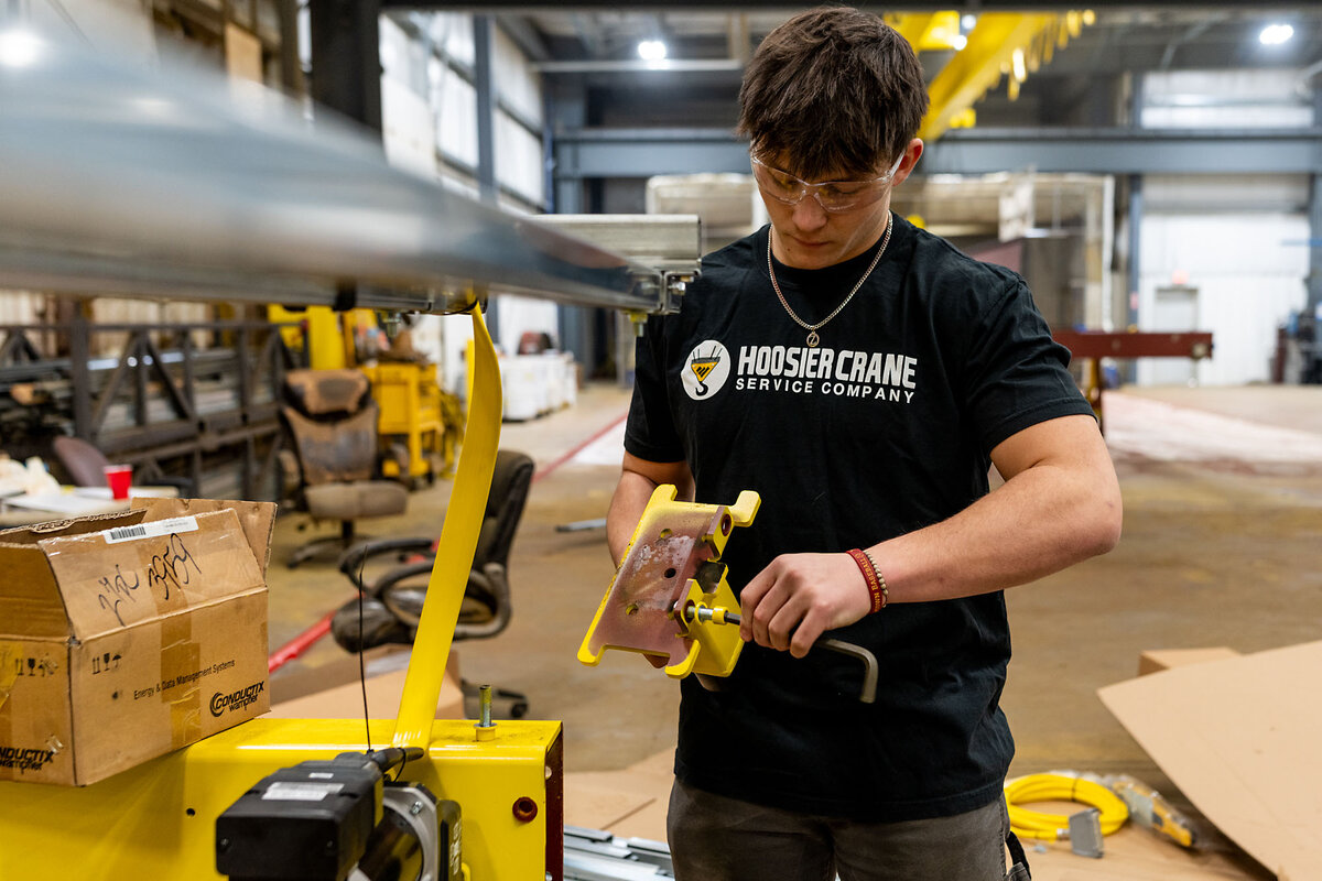 Edgar Soto, a senior at Concord High School in Elkhart, is the kind of student Mr. Mindrum has in mind. Edgar says he has never wanted to attend a four-year college. To get workforce experience, he enrolled in an apprenticeship through his school and is up before dawn each morning to start work with manufacturing technology company Alpha Systems. 鈥淚t鈥檚 something new every day. I love it,鈥 he says. He earns $17 an hour and gives half his paycheck to his mom for family expenses. He spends his afternoons taking classes back at his high school.