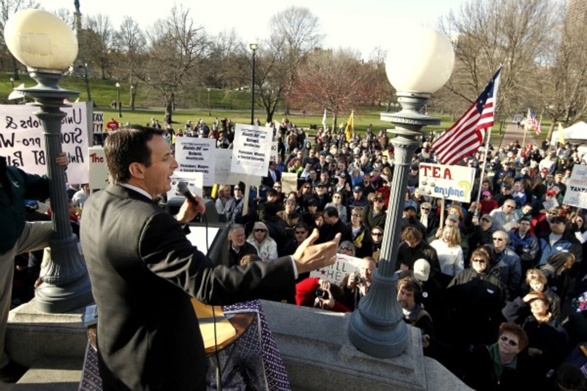 His lower profile was evident in the turnout of this year's Boston tea party tax day event. Anne McClure, who attended last year event, noted it had been 鈥渕uch more crowded鈥 last year, when former Alaska Gov. Sarah Palin headlined.