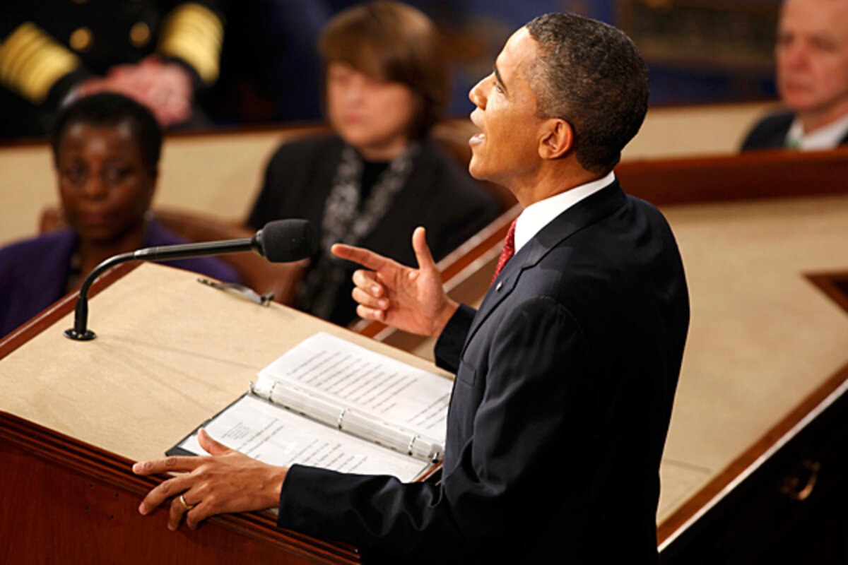 Republicans had less to say about the president鈥檚 sustainable energy pitch, couched as a way to create well-paying jobs in the United States. Telling the story of an American laid off from a furniture plant before finding work at a wind turbine manufacturer, Obama vowed to 鈥渘ot cede the wind or solar or battery industry to China or Germany because we refuse to make the same commitment here.鈥
