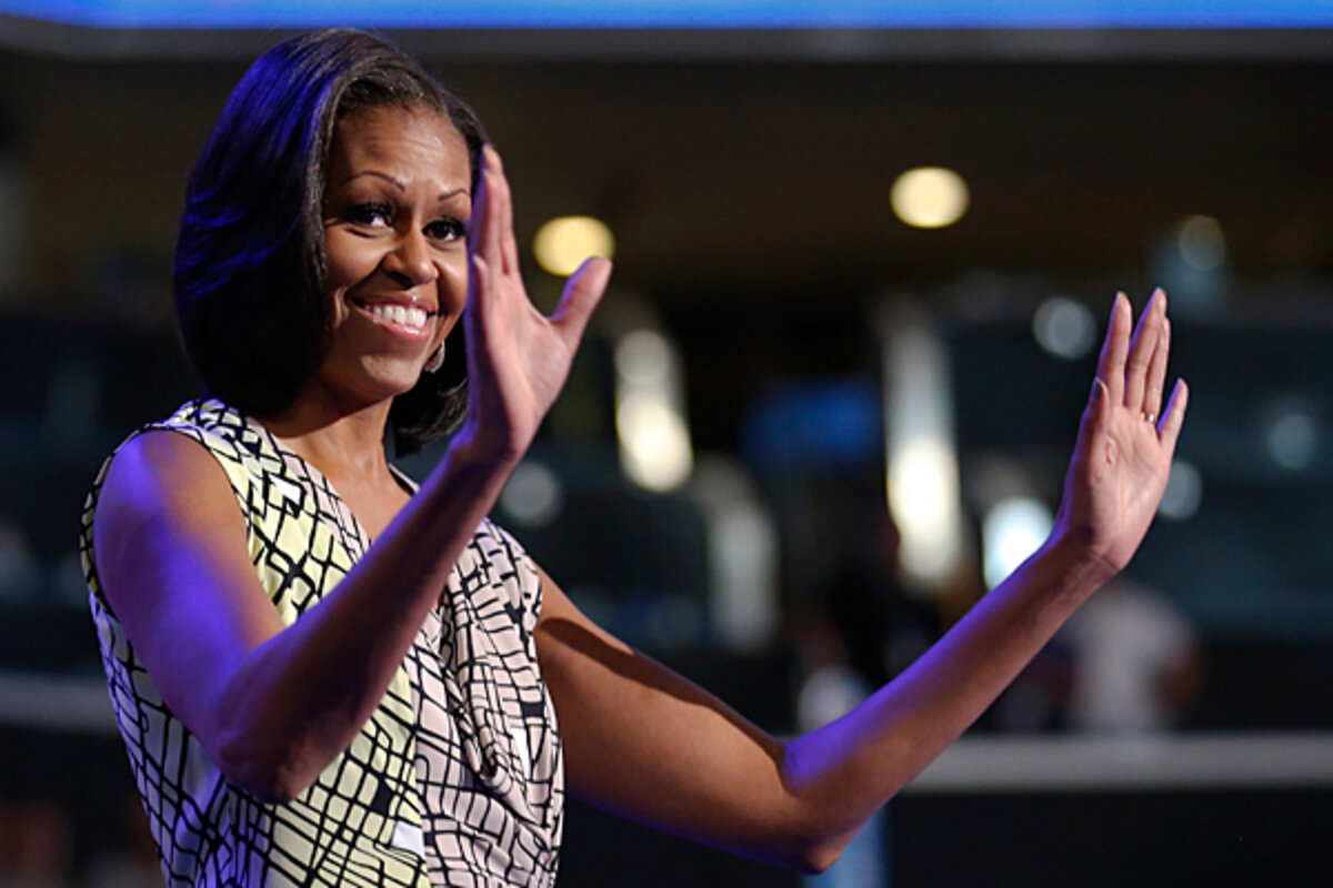 First lady Michelle Obama's appearance highlights the opening night of the three-day Democratic gathering in Charlotte, North Carolina, which concludes with Obama's acceptance speech on Thursday to more than 65,000 supporters in a downtown football stadium.