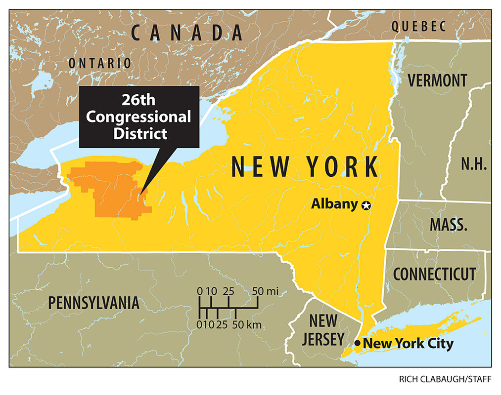 The three-way race in New York鈥檚 26th Congressional District is being characterized, especially by Democrats, as a referendum on the GOP proposal to replace Medicare with subsidies for seniors to buy private health insurance. The district has long been a Republican stronghold, and Democrats in Washington are hoping that a win there Tuesday would convince Republican lawmakers that the public rejects their strict austerity plan for dealing with the national debt and the deficit.