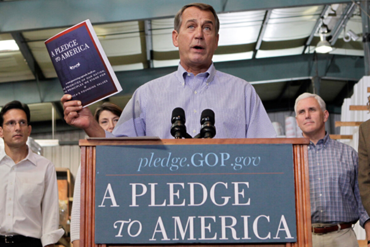 Stewart wasn't the only one to draw this conclusion. , staff writer Perry Bacon Jr. compares the Pledge to America with the GOP's 1994 "Contract With America."