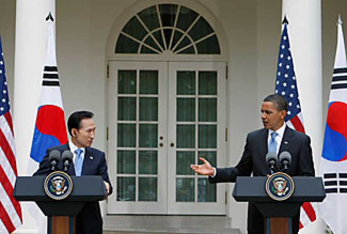 Tuesday's press conference also addressed the US-South Korea free trade agreement, which both countries signed two years ago. Final approval, however, has not happened, with passage in the US Senate in limbo over issues such as the number of Korean automobiles coming into the US. South Korea's tough quotas on US beef imports have also caused concern.