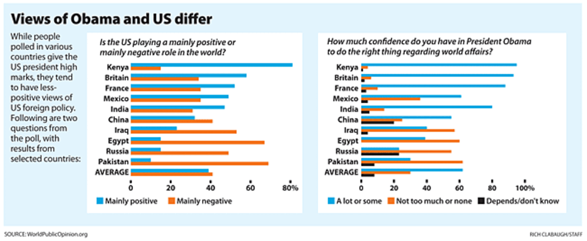 The annual WorldPublicOpinion.org survey, coordinated by the University of Maryland's Program on International Policy Attitudes (PIPA), comes out just as Obama is in Russia on another global-outreach trip, aimed at improving perceptions of the US abroad.