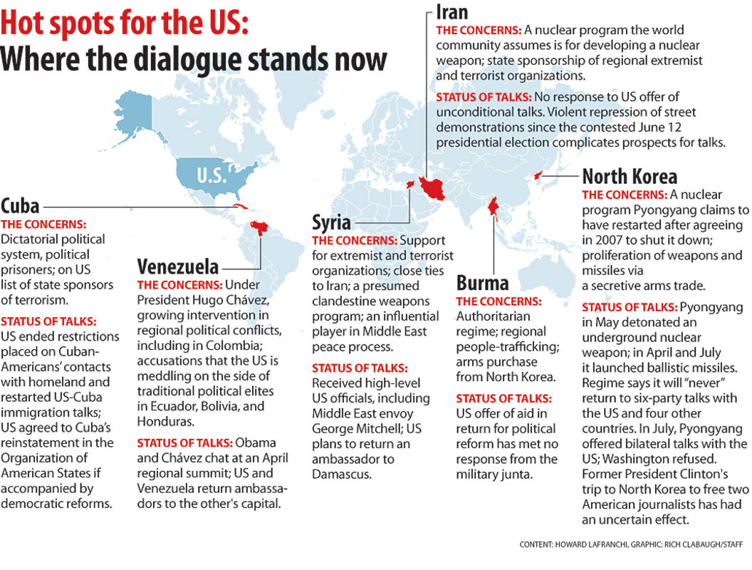 Whether the issue is key security threats, as with Iran and North Korea, or lower-profile matters, as with Cuba or Burma (Myanmar), Obama's critics and even some backers of the "talk to the enemy" approach are starting to speak of the policy's limits.