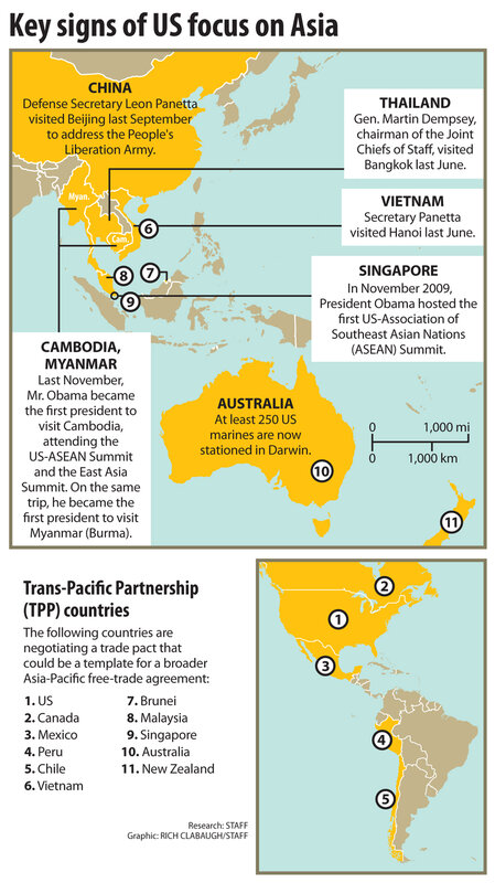 These partners include rising economic powers in Southeast Asia such as Thailand, which has an "extraordinarily key location" given its borders with Myanmar (Burma), Malaysia, and Vietnam, according to Gen. Martin Dempsey, chairman of the Joint Chiefs of Staff. "They're a very credible, welcoming military power," he said in a visit there last June.