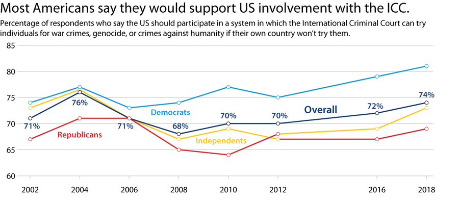 That support extends specifically to the ICC, Ms. Smeltz says. Citing results of the Chicago Council鈥檚 annual survey of US attitudes on global affairs, set to be published in October, she says this year鈥檚 survey shows a slight upward trend in support for US participation in the ICC, which has hovered around 70 percent for over a decade.