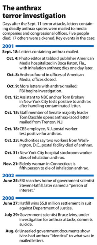 The Army document notes only that Ivins's access to anthrax and other pathogens was pulled on Nov. 1, 2007, and does not explain whether his superiors had earlier suspicions about him.