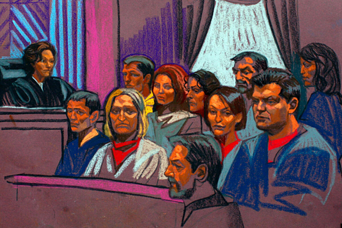 But once they entered the courtroom, any spy glamour was gone. The defendants arrived in handcuffs. Many of them were in prison garb 鈥 tan smocks for the women with orange T-shirts underneath and blue smocks for the men. They were seated where a jury would normally sit, and their lawyers 鈥 one for each defendant 鈥 were crammed into the space in front of the Judge Wood.